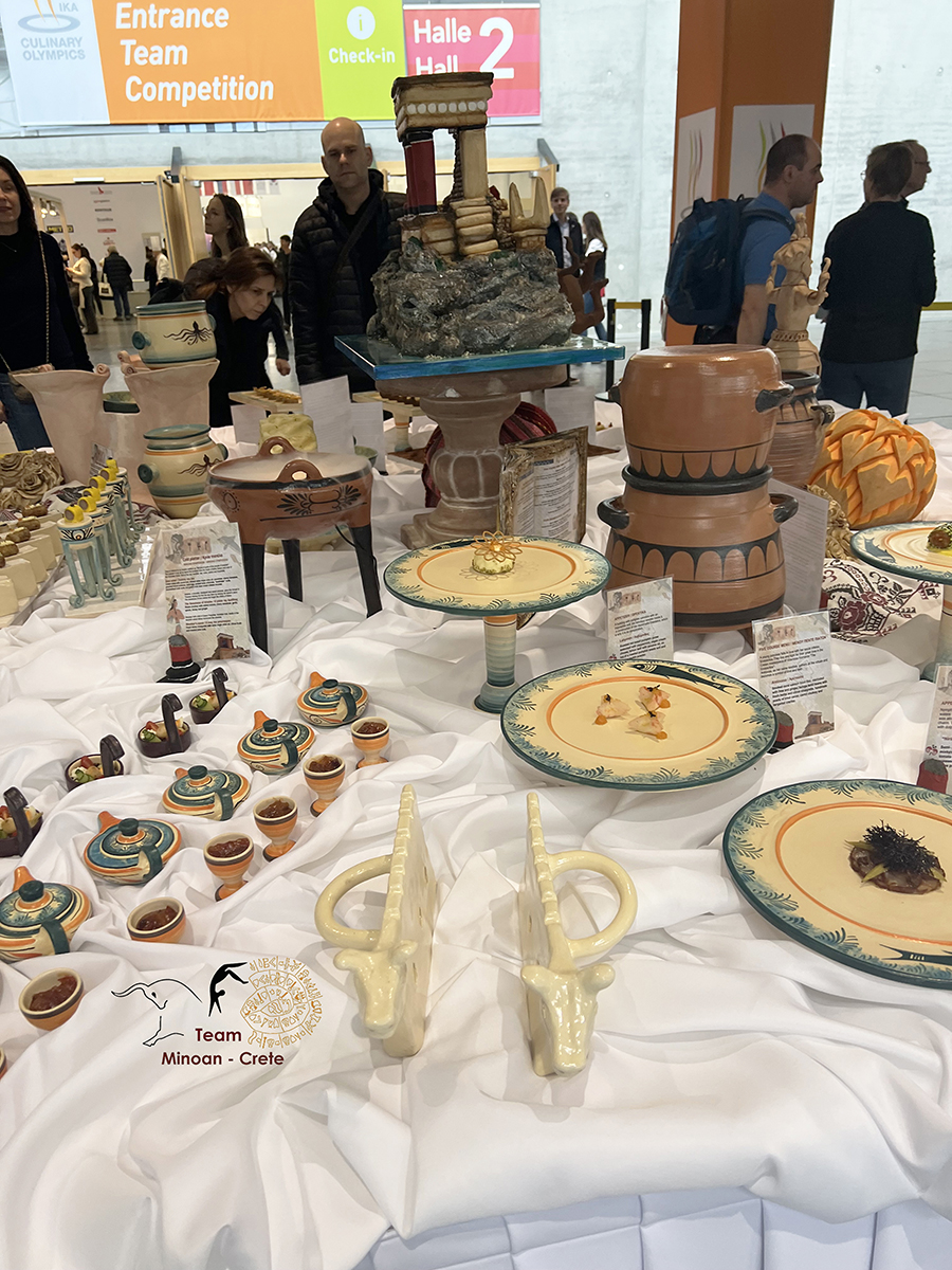 Η εταιρεία Σαριδάκης μας έκανε τις στολές κι ευχαριστούμε για την τιμή, όπως και την εταιρεία “Milba”, τα ελληνικά βούτυρα, τα νερά Ζαρού, τα μοναδικά φυσικά μεταλλικά νερά της Κρήτης, γεμάτα βραβεύσεις, την εταιρεία “Eliama” ελαιόλαδο, το εστιατόριο “Πέτρα και βότσαλο”, τα κεραμικά “Manegis” που μας έφτιαξαν όλα τα πολύτιμα κεραμικά που χρησιμοποιήσαμε στην παρουσίαση μας στους Ολυμπιακούς αγώνες, την εταιρεία “Κορώνη”, την εταιρεία “CATEREQUIP Καραμάνης-Μαριδάκης και Creteotel για τον πολύτιμο εξοπλισμό που μας έδωσαν, το κρεοπωλείο “Νικολούδης”, το “Αν ονειρεύεσαι” για το θαυμάσιο ντεκόρ και την έξοχη βοήθεια, το εξαιρετικό και πολύ εφευρετικό εστιατόριο ¨” Βεγγέρα Ζαρός” που μας παραχώρησε τον χώρο για να κάνουμε τα δοκιμαστικά πριν την τελική μας αναμέτρηση στους Ολυμπιακούς αγώνες, το ecolab για τα πολύτιμα απορρυπαντικά που μας παραχώρησε για την απόλυτη απολύμανση και λάμψη κάθε σκεύους μας στον διαγωνισμό, το κέτερινγκ Gialytakis για τον χώρο και τα σκεύη που μας έδωσε, το “κτήμα Ζαχαριουδάκη” για τα εξαιρετικά δουλεμένα κρασιά που μας έδωσε για τον διαγωνισμό, το ” Αρτοποιείο Ανωγιαννάκη” Ζαρού για όλα τα μοναδικά προϊόντα που μας προσέφερε, τον “Ιανό” στις Μοίρες για την αξιοπρόσεκτη βοήθεια, το φοβερό και υπέροχο καζάνι και πιεστήριο σταφυλιών του πρωτοπόρου οινοποιού-ρακοποιητή-ποτοποιητή Νικολαντωνάκη για τις ρακές και όλα τα υπέροχα που μας προσέφερε στον αγώνα μας, τον Πρόεδρο Μανιταρόφιλων Ελλάδος και την εταιρεία “Μανιταροπροϊόντα Γρεβενών” για τα προϊόντα που μας έδωσαν, το βιβλιοπωλείο “Υδρόγειος” στις Μοίρες Ηρακλείου για την πολύτιμη συμβολή του, τον παραγωγό με τα εκλεκτά προϊόντα Geokyklos, την εταιρεία mama Crete που τιμά με την προσφορά της την Πατρίδα στην Γερμανία και για ό,τι χρειαστήκαμε άμεσα μας συμπαραστάθηκε, τους αδελφικούς συλλόγους μας Κρητών της Γερμανίας για την άμεση και αγόγγυστη, νυχθημερόν στήριξή τους, την ταβέρνα “Botomos” στον Ζαρό για τα τόσα ψάρια που μας έδωσε.